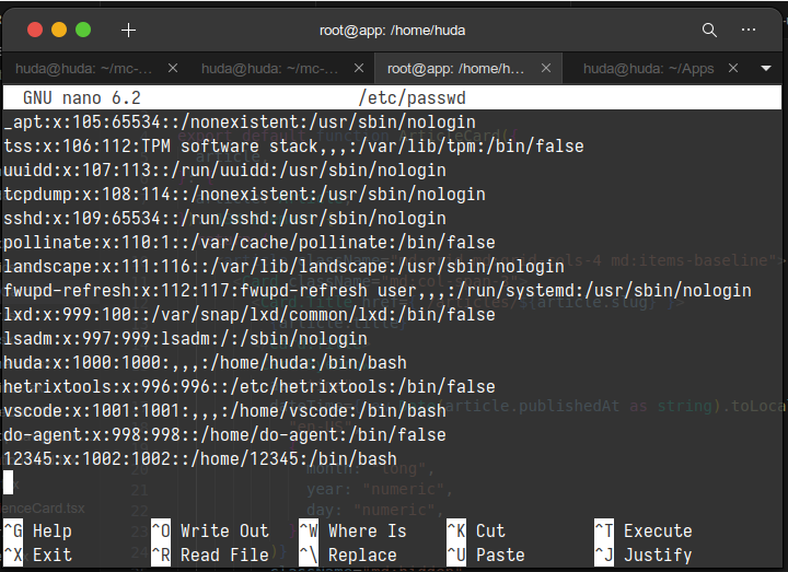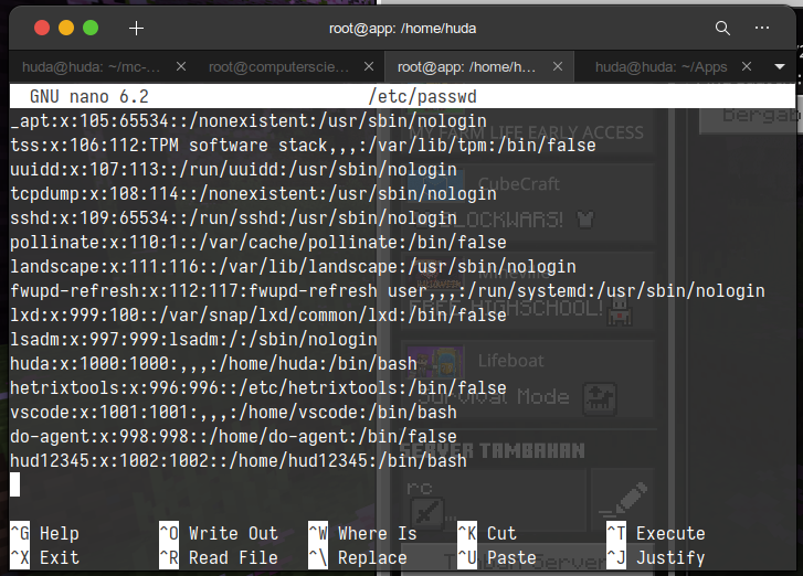 nano /etc/passwdakan muncul seperti gambar berikut pada bagian paling bawah: